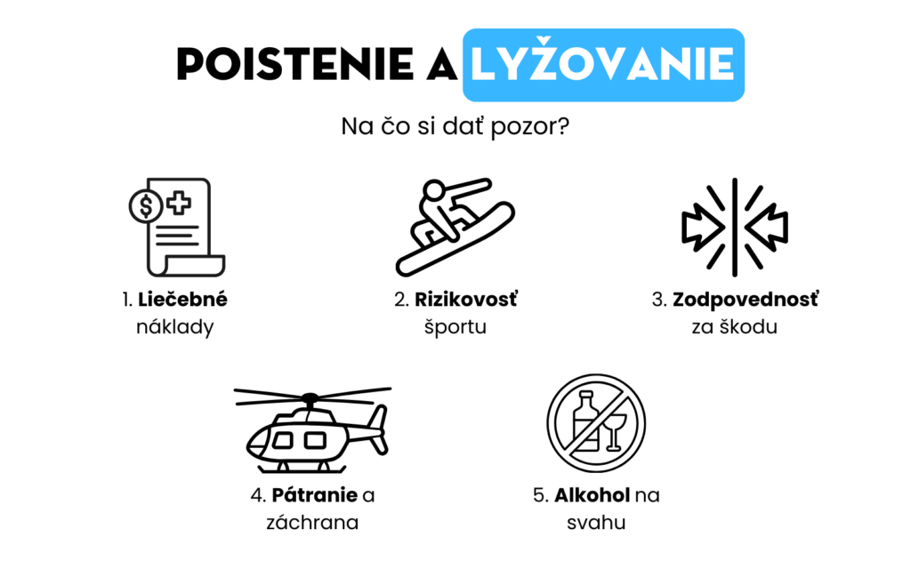 Na Slovensku sú liečebné náklady kryté z povinného zdravotného poistenia, ale v zahraničí potrebujete mať uzatvorené cestovné poistenie. Ak sa chystáte na lyžovačku na Slovensku, je potrebné si uzatvoriť poistenie, ktoré pokrýva horskú záchrannú službu a zodpovednosť za škodu voči ostatným lyžiarom. V niektorých produktoch celoročného cestovného poistenia môže byť automaticky v balíčku krytá aj horská záchranná služba na Slovensku.